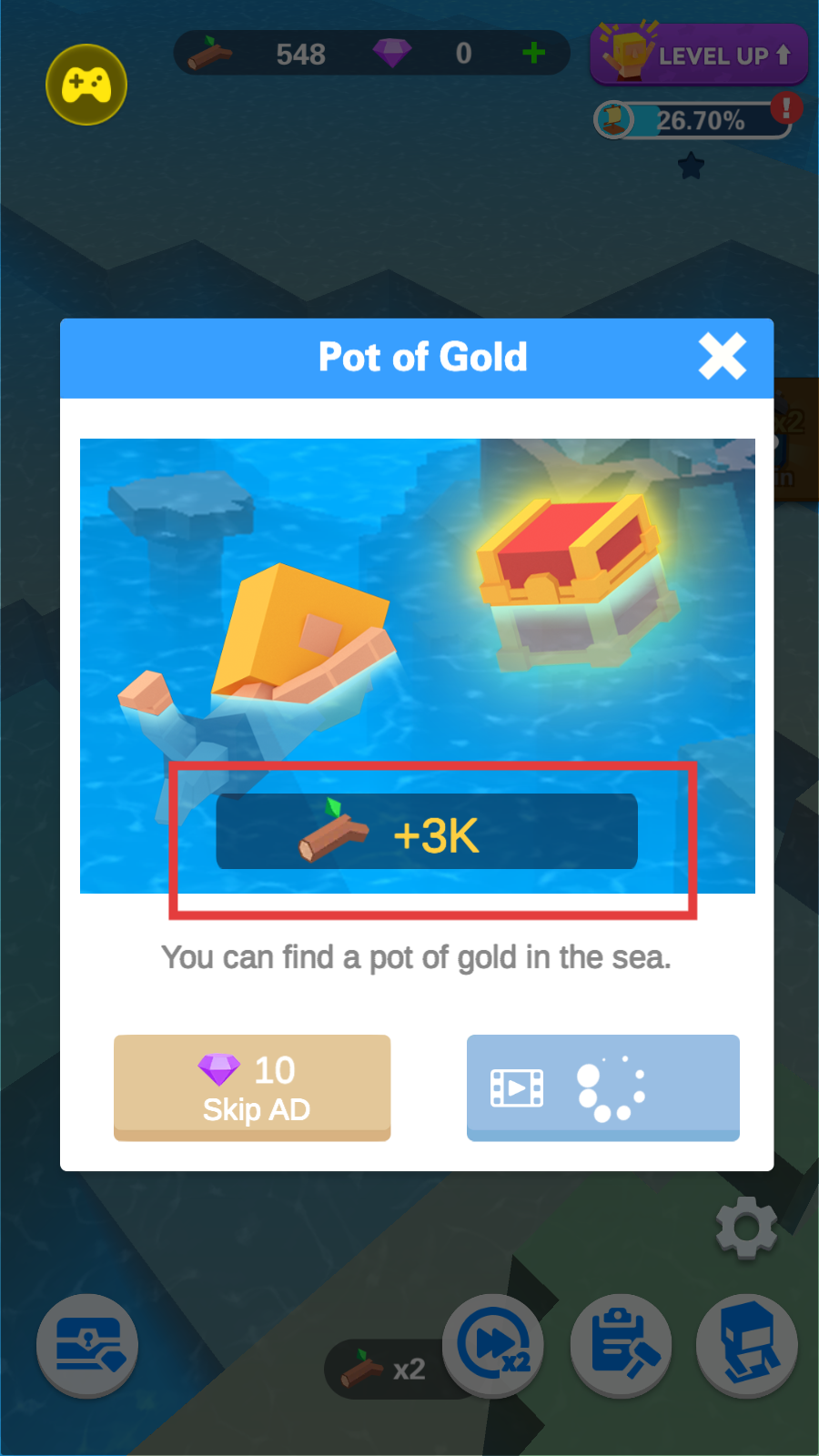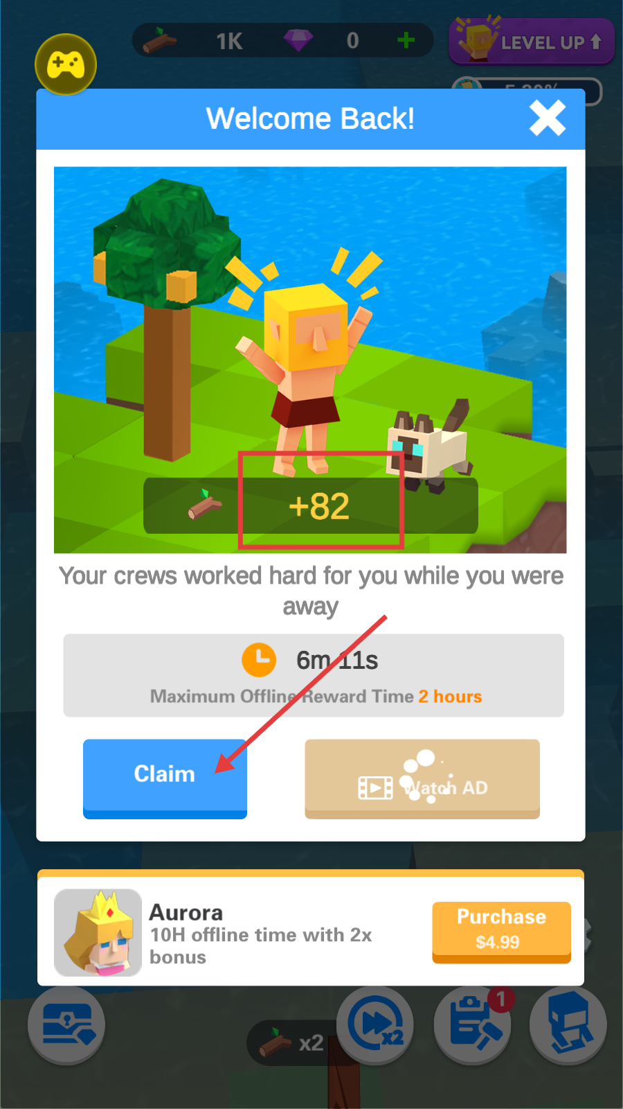 1、點擊【Claim】,領(lǐng)取離線獎勵的木材。