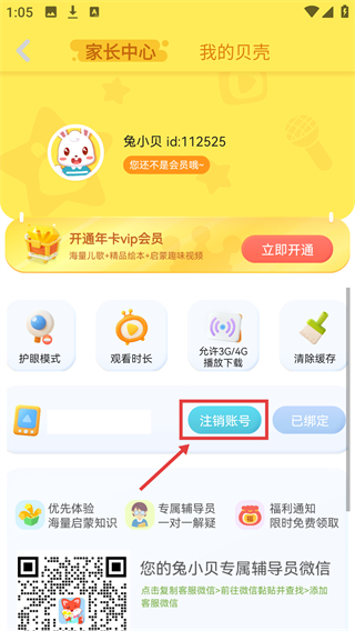 2、進入家長中心頁面后,找到【注銷賬號】按鈕。