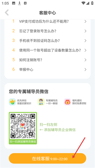 4、進入【客服中心】后,點擊【在線客服】按鈕進行咨詢。