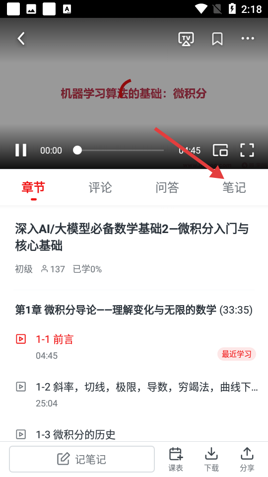 4、學習中忽然想要記錄些知識點,我們提供了記筆記功能