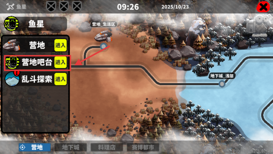 1、在營地界面點擊【營地吧臺】進入,可獲取任務或補給,為射擊闖關積累資源。