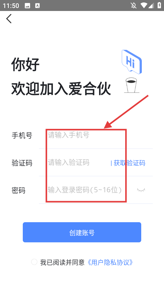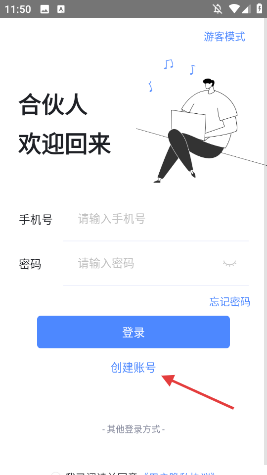 2、點擊【創建賬號】,進入注冊界面。