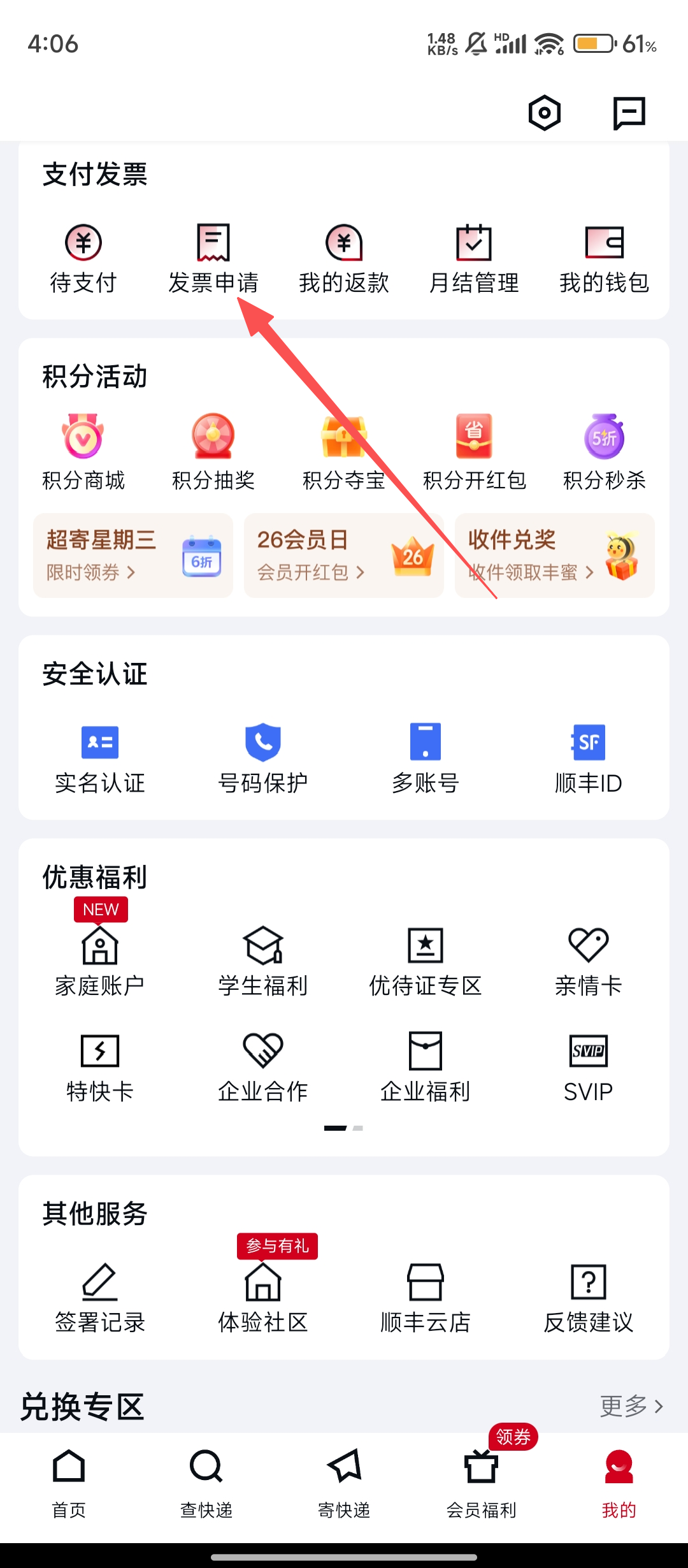 1、在順豐速運App,進入【我的】頁面,開啟發票申請流程,這一步可別落下哦。