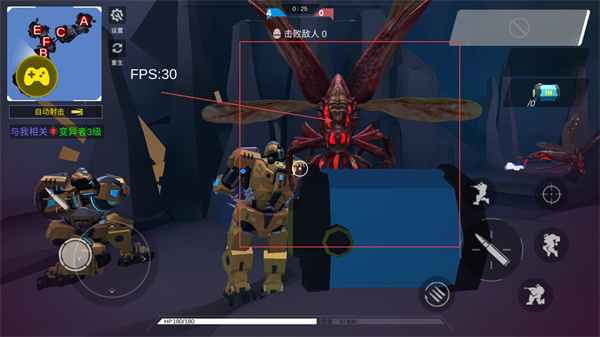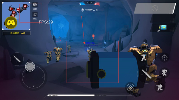 3、進入戰場后,啟用“自動射擊”功能可自動攻擊敵方單位,同時操控角色移動,借助場景掩體規避敵方火力,積累擊殺分數。