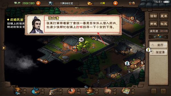 2、完成【退婚風波】任務后,回【張府】將信息轉述給【張玄清】,接下尋找其女的委托。