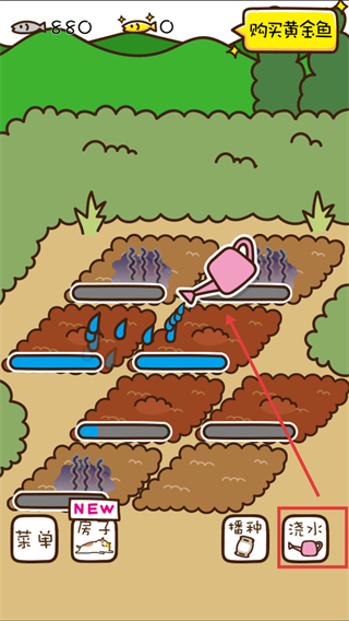 3、點(diǎn)擊澆水功能給已播種的土地澆水,保持土壤濕潤(rùn)以促進(jìn)種子順利生長(zhǎng)。