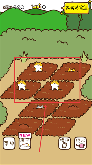 4、等待種子生長(zhǎng)成熟,土地中會(huì)出現(xiàn)可愛(ài)貓咪,收獲貓咪可積累游戲內(nèi)的資源。