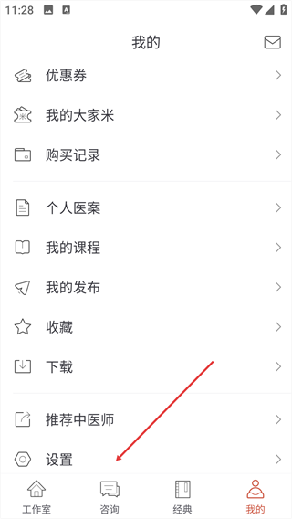 2、在個人中心頁面,選擇【設置】選項,進入設置界面。