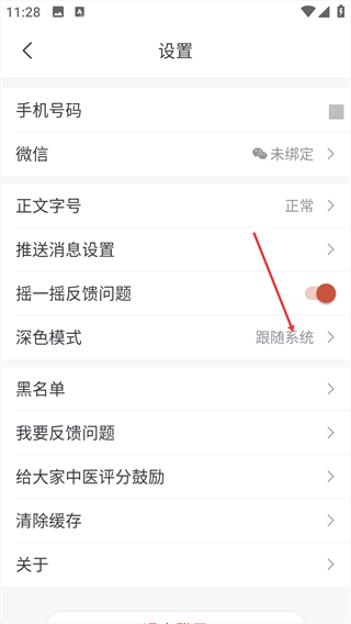 3、在設置頁面,點擊【深色模式】選項,進入深色模式的設置頁面。