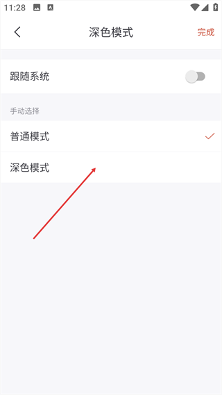 4、選擇【深色模式】選項,完成顯示模式的調整操作。
