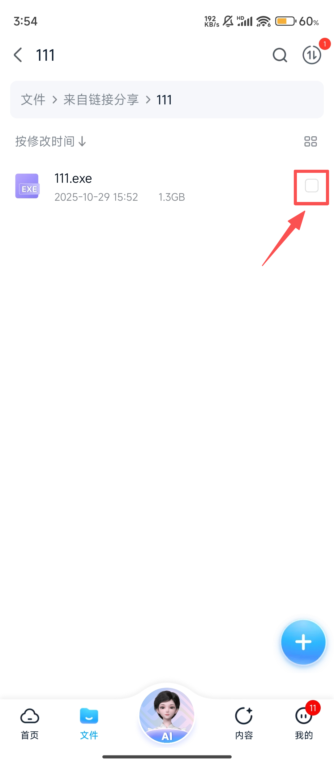 2、在文件頁面找到【111】文件夾,點擊進入,查看其中文件,為下載做準備呢。