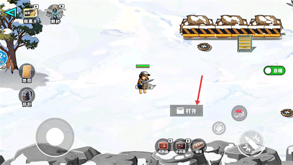 3、箭頭指向【打開】交互按鈕,角色可交互物品。