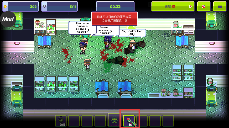 2、點擊僵尸按鈕,召喚僵尸大軍,提升感染能力,推進游戲。
