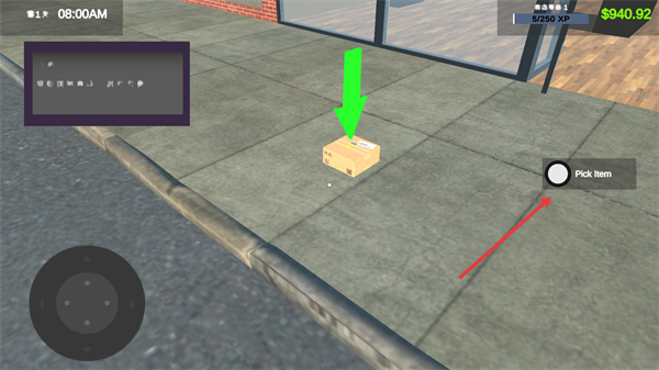 3、在店外發現貨物箱后點擊拾取,將其搬運至店內為后續上架做準備。