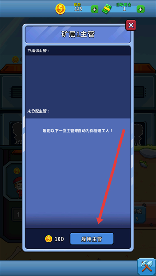1、找到主管空位圖標,點擊進入礦層1主管的界面。
