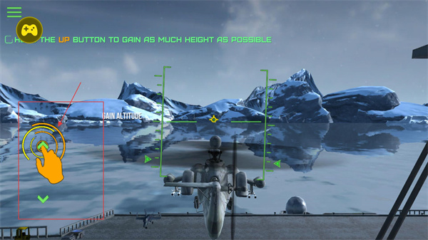 1、起飛階段需長按“上升鍵”提升高度,該操作是直升機脫離平臺的基礎,同時需注意高度數值的實時變化以控制飛行狀態。