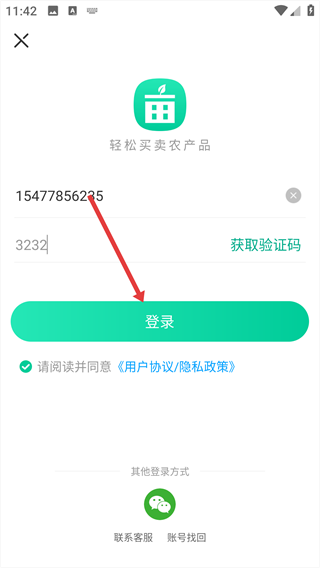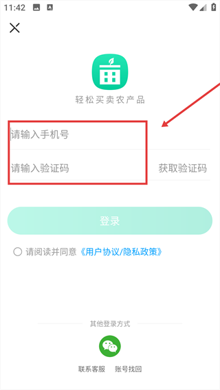 3、進入登錄界面,依次填寫手機號和驗證碼。