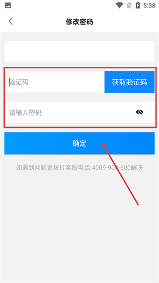 4、進入修改密碼頁面后,先點擊【獲取驗證碼】,輸入驗證碼與新密碼后,點擊【確定】即可完成密碼修改。