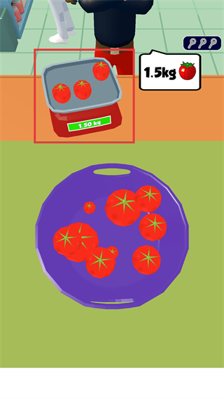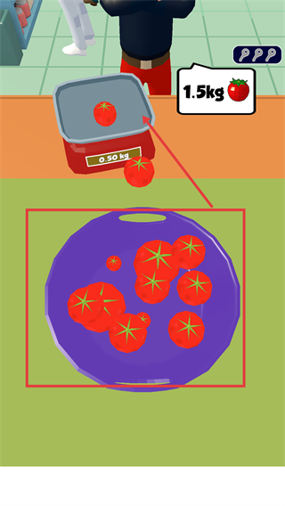 3、從【容器】中取出【番茄】,按照指示放到【稱重臺】,逐步累積重量以達到目標數(shù)值,推進流程。