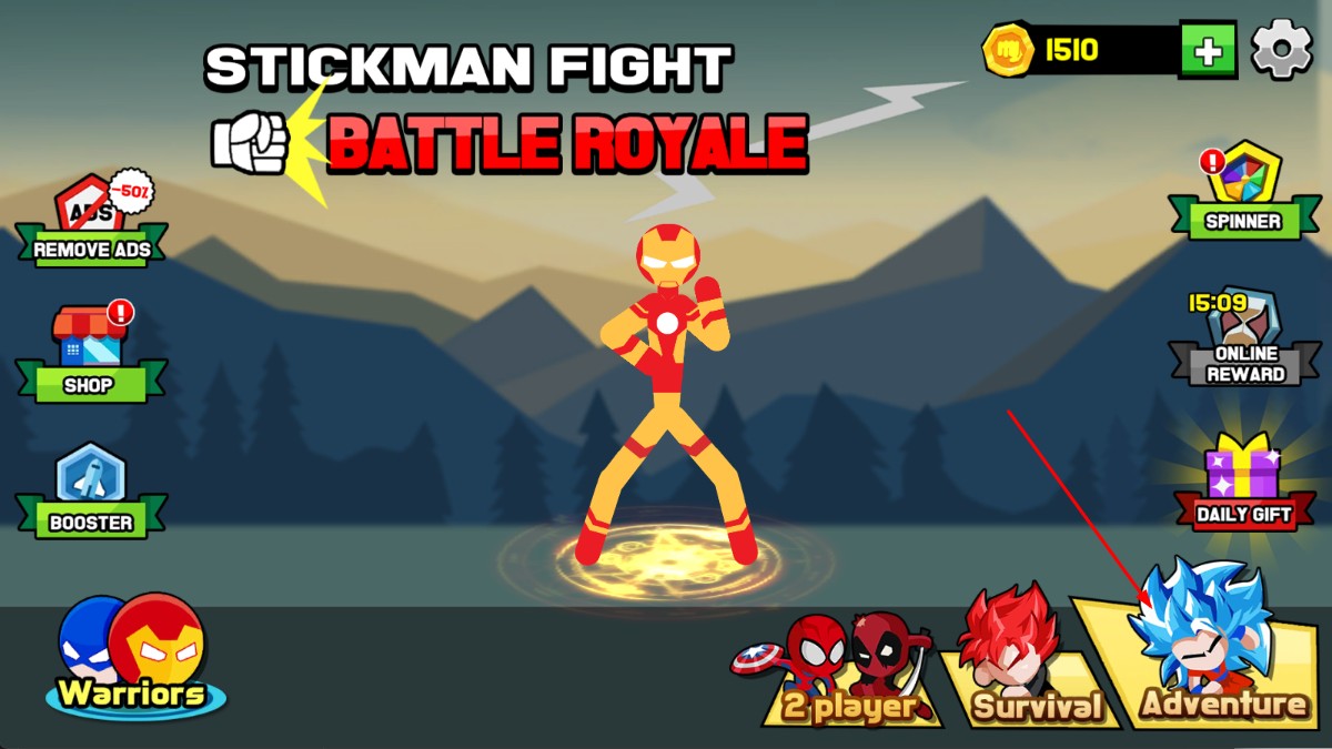 1、選擇游戲模式,進入《火柴人大戰大逃殺》游戲。