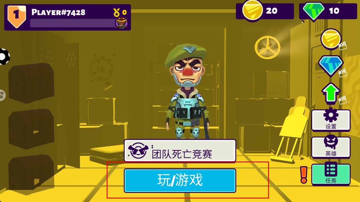 1、點(diǎn)擊【玩/游戲】按鈕進(jìn)入【團(tuán)隊(duì)死亡競(jìng)賽】模式,積累經(jīng)驗(yàn)提升等級(jí)與實(shí)力,解鎖更多趣味玩法和挑戰(zhàn)。
