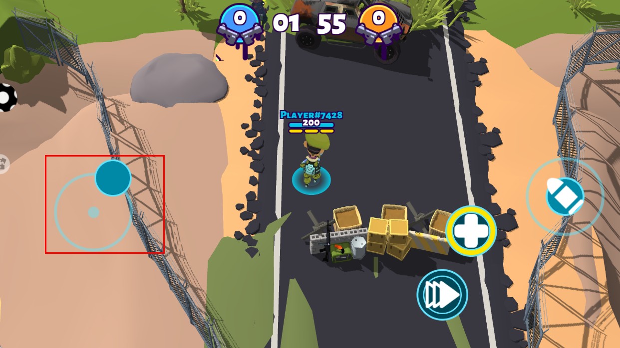 2、通過左側(cè)移動(dòng)控制區(qū)域操作角色走位,躲避敵人攻擊并尋找掩體,保障自身安全且提升生存幾率。