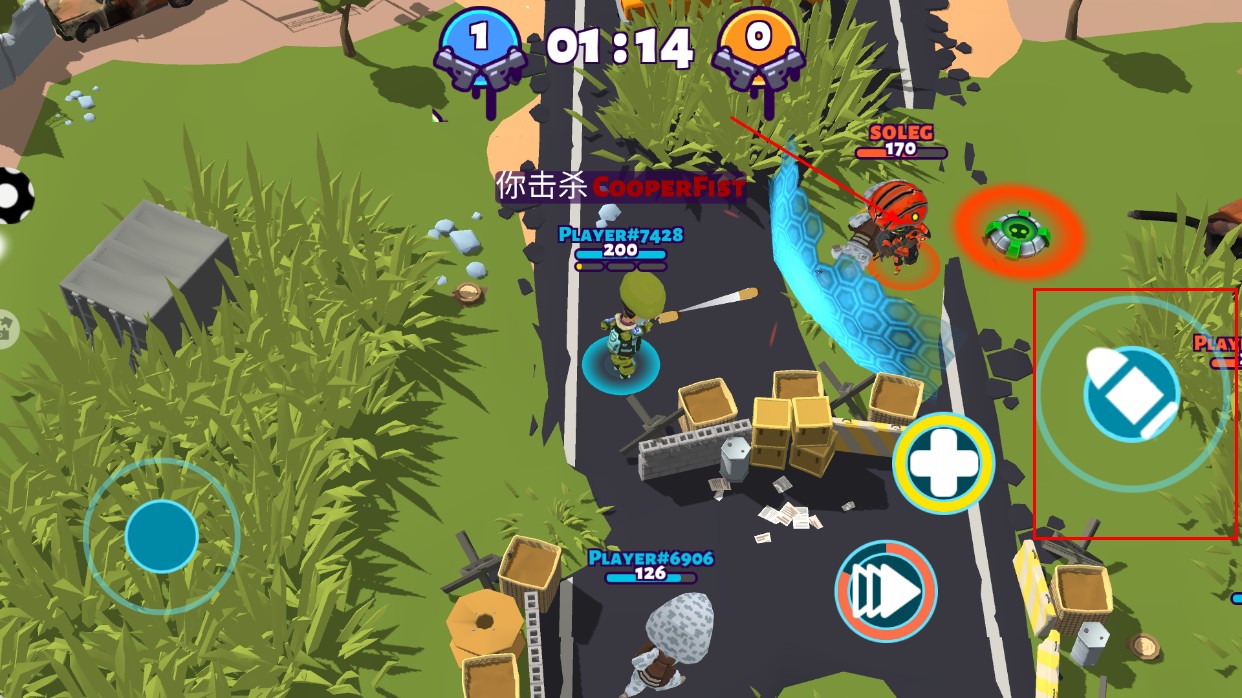 4、點(diǎn)擊右下角攻擊鍵打擊敵人,同時(shí)也要注意自身的走位避免比對(duì)方擊敗。