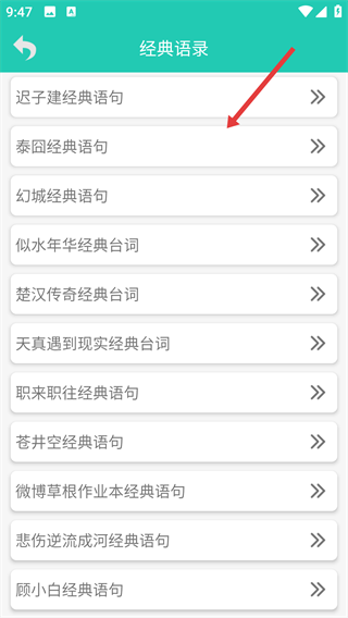 3、選擇目標(biāo)分類,進(jìn)入對應(yīng)的語錄詳情頁。