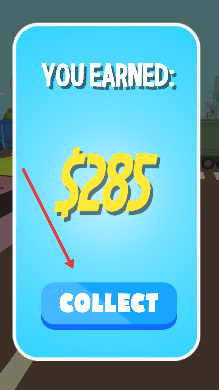 4、游戲結束后點擊COLLECT,領取金幣,如$285,用于升級屬性提升表現。