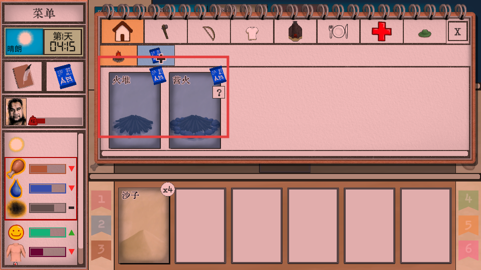 4、解鎖【火堆】和【營火】的制作,提升生存技能,保障生存需求。