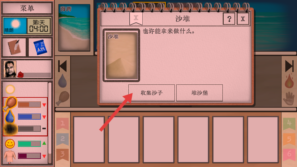 3、點擊【收集沙子】,獲取沙子資源,為后續生存建造做準備。