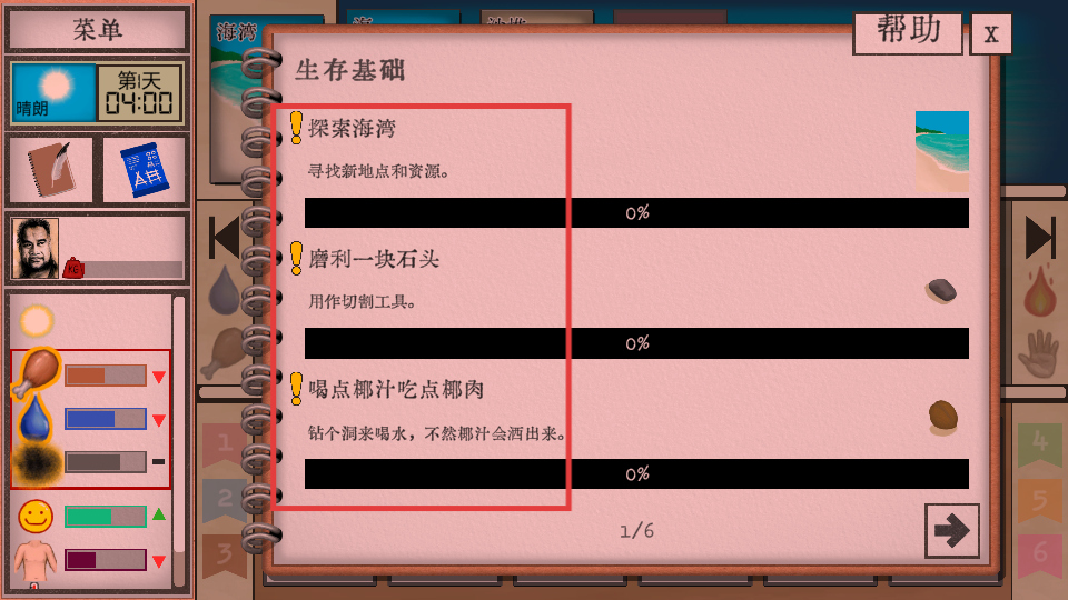 1、點擊筆記圖標,查看生存任務列表,開啟生存基礎任務的挑戰。