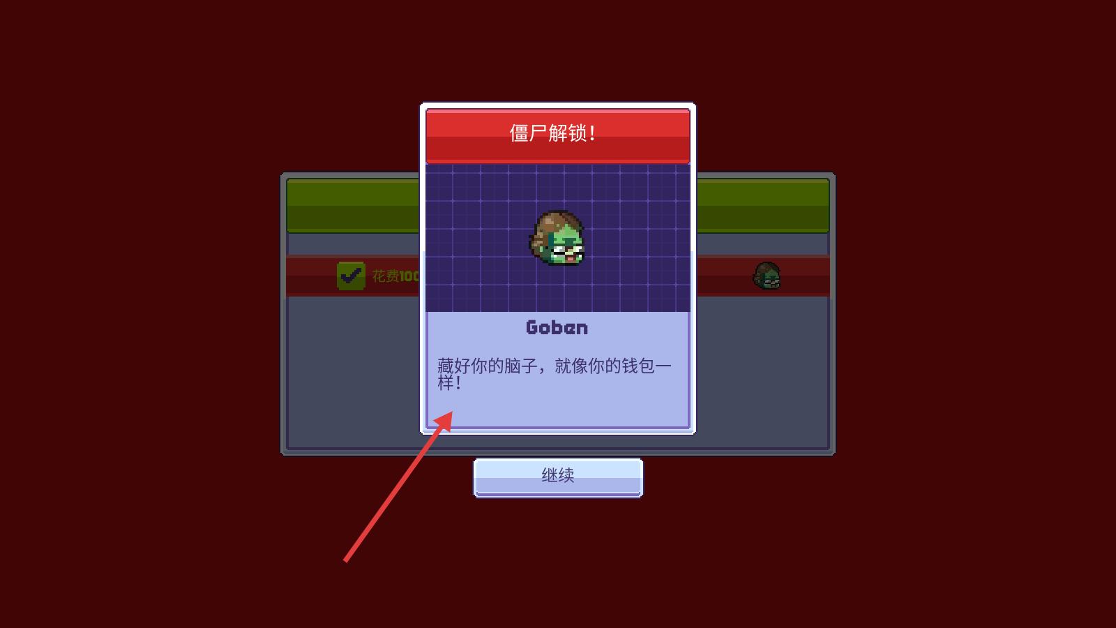 3、解鎖新僵尸【Goben】后點(diǎn)擊繼續(xù),該僵尸擁有獨(dú)特能力,能在戰(zhàn)斗中發(fā)揮特殊作用,提升團(tuán)隊(duì)多樣性。