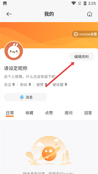 2、進入“我的”頁面后,點擊“編輯資料”按鈕。