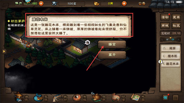 4、遇到【雕花木床】選睡覺選項,可恢復角色狀態,為后續探索或戰斗儲備良好體能。