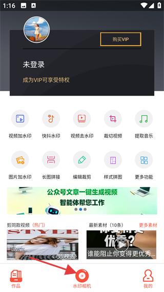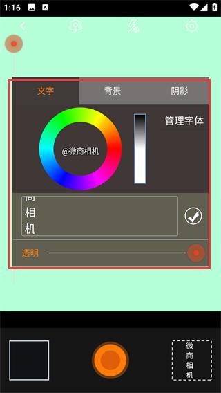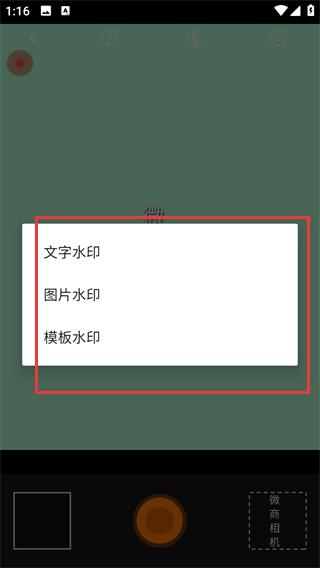 2、在頁(yè)面中點(diǎn)擊【微商相機(jī)】按鈕,展開水印類型選擇菜單。