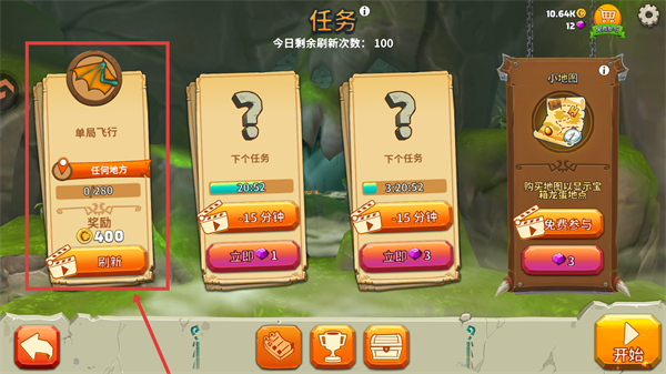 3、接取【單局飛行】任務,在任意地方完成飛行目標,獲取【400】金幣獎勵,提升資源儲備。