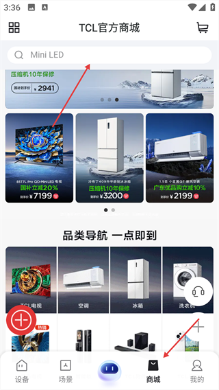 1、在【TCL官方商城】頁面,點(diǎn)擊頂部【搜索欄】。