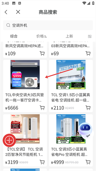 2、進(jìn)入搜索頁后,在輸入框中輸入空調(diào)外機(jī),進(jìn)行搜索。