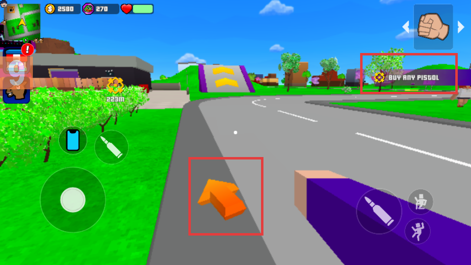 4、按照箭頭方向移動,完成【BUY-ANY-PISTOL】任務,推進游戲目標。