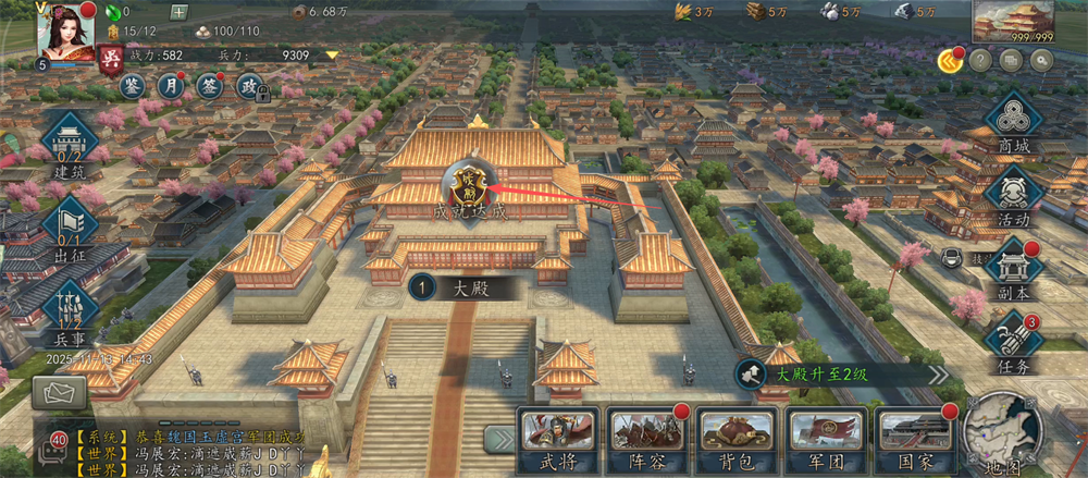 4、滿足大殿升級需求后,點擊【升級】,就能提升大殿等級啦。