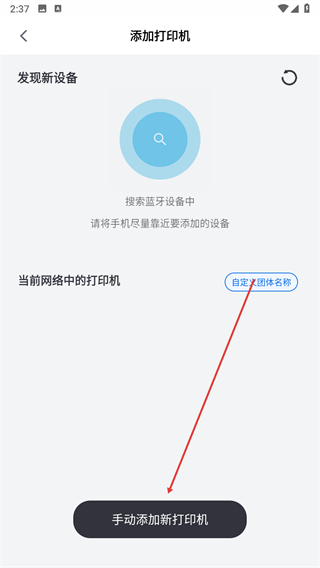 2、進入添加打印機頁面,選擇底部的手動添加新打印機按鈕。