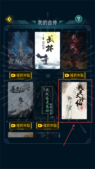 1、進入【我的自傳】界面后,優先選擇【我是大詩仙】故事線,通過提前體驗解鎖專屬劇情,快速開啟詩人成長路徑。