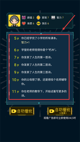 2、在成長事件中,關注【智力】相關選項,5歲學完小學課本可+1智力,后續多參與發表詩歌等事件穩固屬性。
