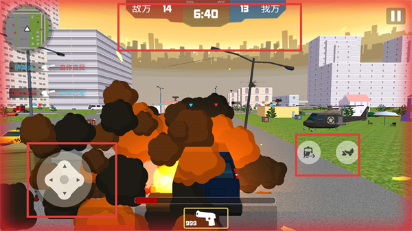 1、在團隊對戰中,利用上到車上虛擬搖桿控制角色移動,注意觀察敵我雙方人數和剩余時間。