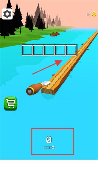 1、操控工具沿木板移動,填充上方的空白欄位,同時積累下方的資源進度,推進鑿木頭進程。