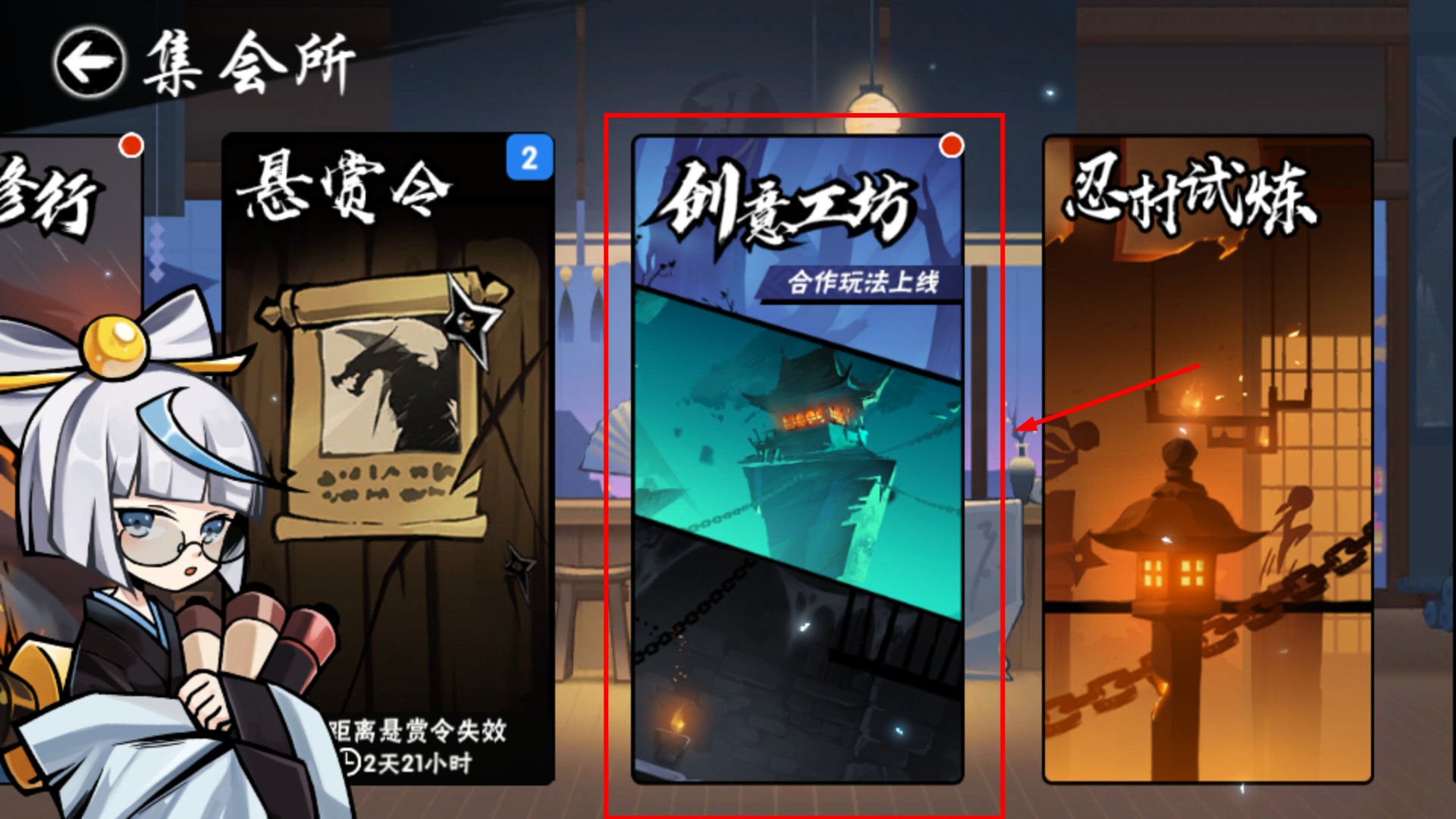 1、在集會所界面點擊【創意工坊】選項,可進入合作玩法模塊,開啟玩家自制地圖的游玩體驗。