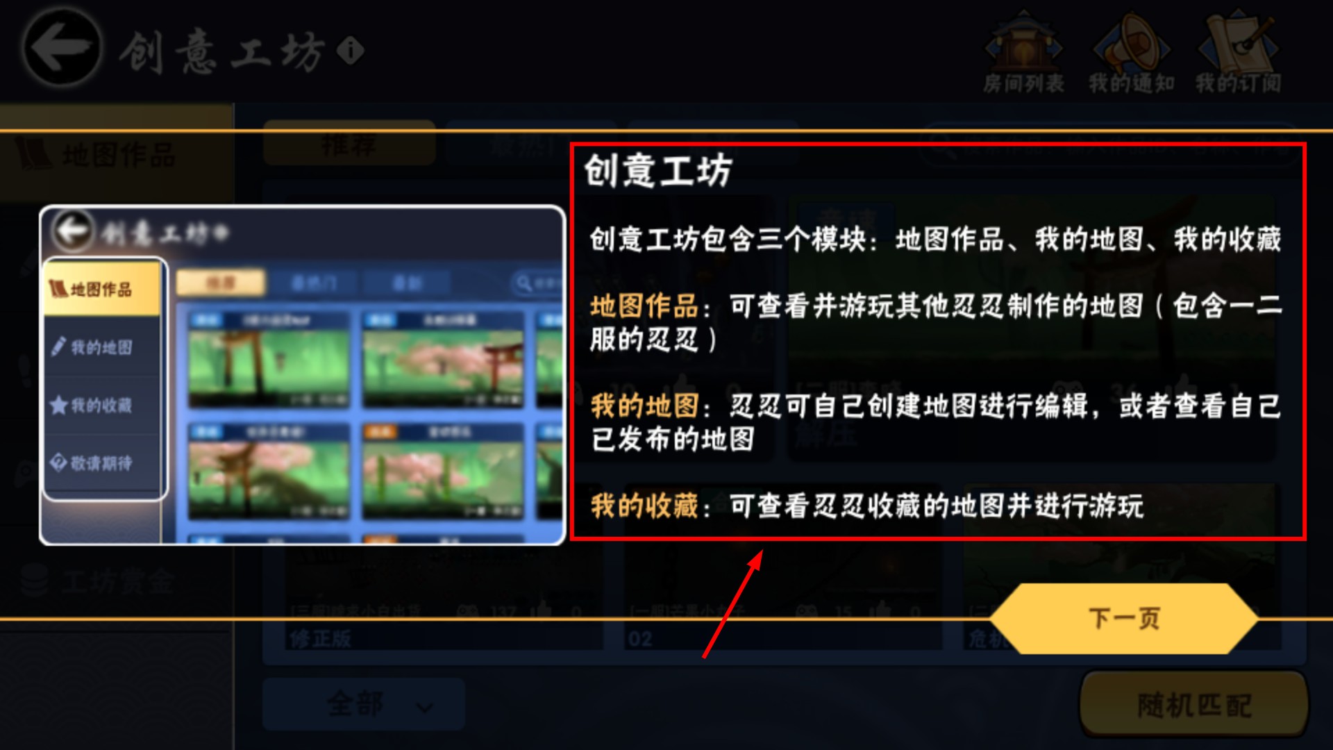 2、創意工坊含【地圖作品】-【我的地圖】-【我的收藏】模塊,可游玩他人地圖創建或查看自己的地圖。