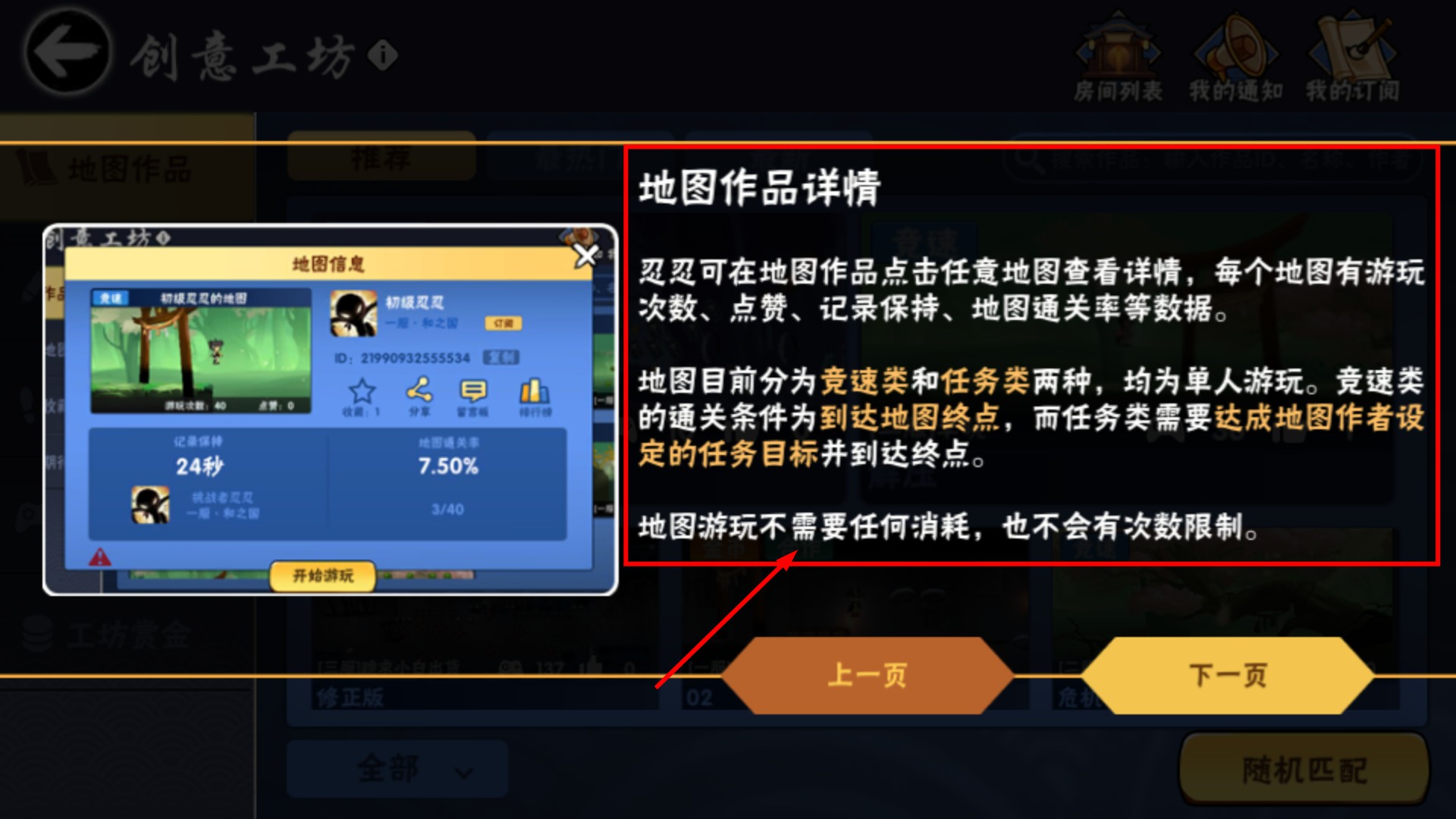 3、點擊地圖作品可查看詳情含游玩次數-點贊-通關率等數據,地圖分競速和任務類單人游玩無消耗。