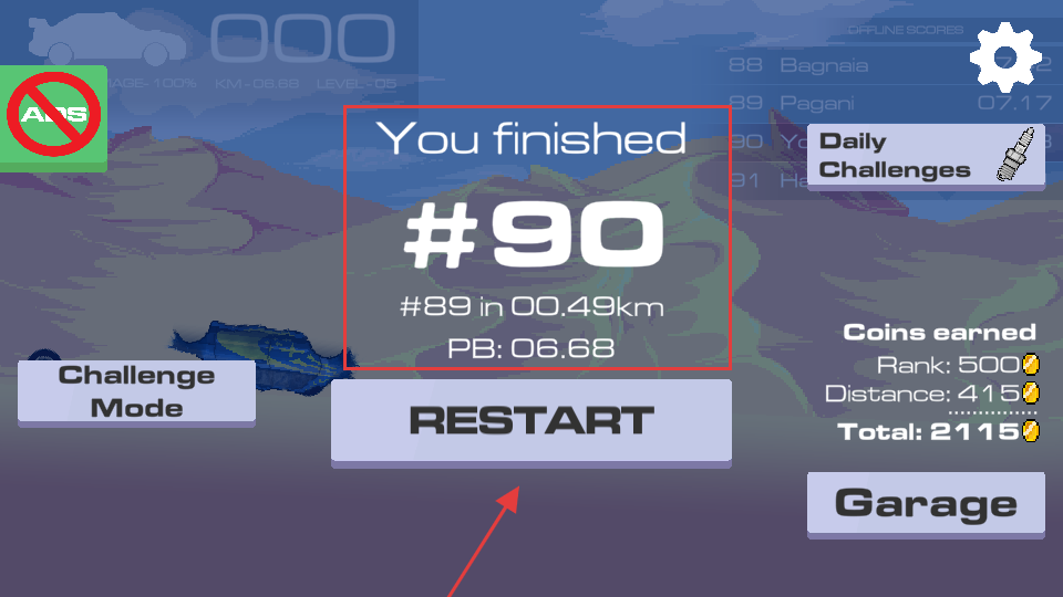 4、完成挑戰后顯示排名成績,可點擊【RESTART】重新開始新一輪挑戰。